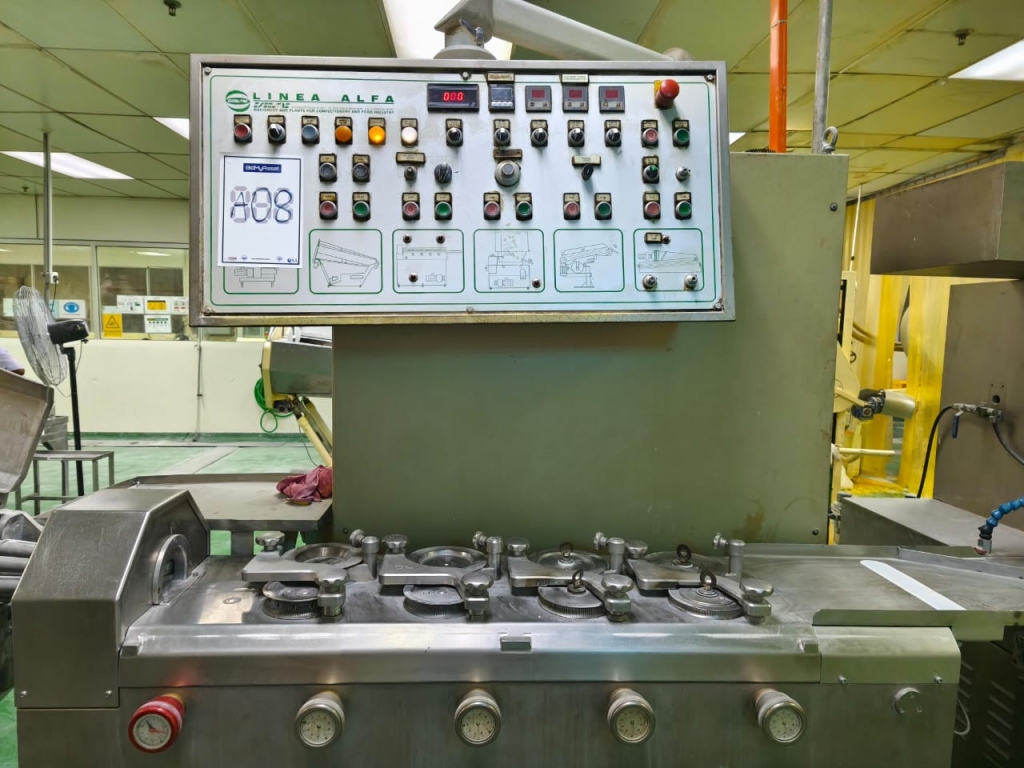 Executive Italy candy forming line. Year of manufacture 2003. Contains batch roller, rope sizer, rotary candy former, die changer, cooling tunnel